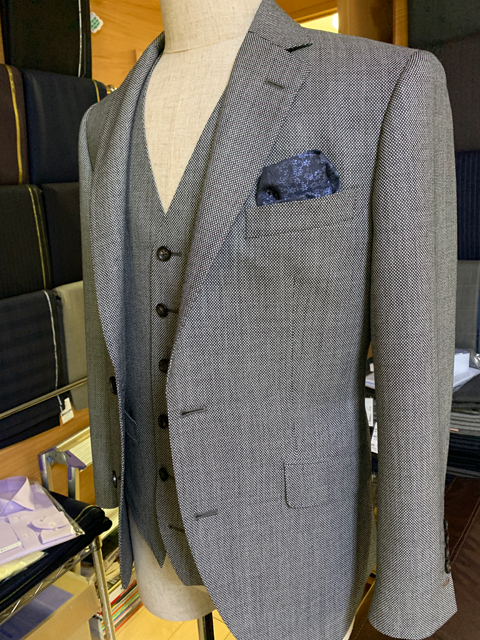 ブリティッシュタイプレギュラー仕立て英国Wain Shiell生地使用バーズアイスリーピース