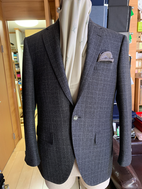 ブリティッシュタイプハイクラス仕立てイタリーGRAGO生地使用SUPER180’Sグレーチェック1釦