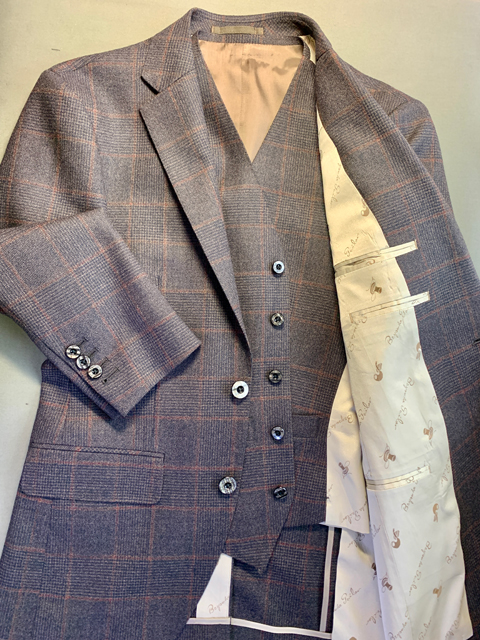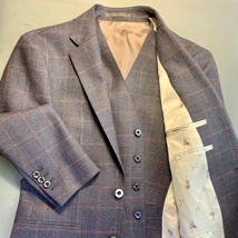 ブリティッシュタイプハイクラス仕立て英国WOODHEAR生地使用茶スリーピース