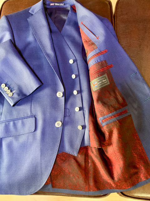 ブリティッシュタイプハイクラス仕立て英国Savile Clifford生地使用ブルー無地スリーピース